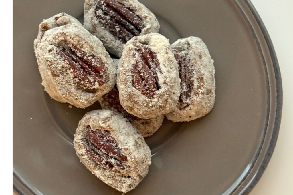 大きなピーカンナッツ、生地にはヘーゼルナッツとコーヒー粉を贅沢に入れた味わい深い一粒。(グルテンフリー・ヴィーガン)